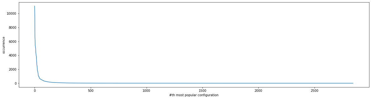 This analysis shows that an output of 16 neurons can represent a time step worth of note data. In addition, while the number of theoretically possible combinations is astronomical in size, almost 99% of all occurring configurations are represented by the top 1000 configurations.